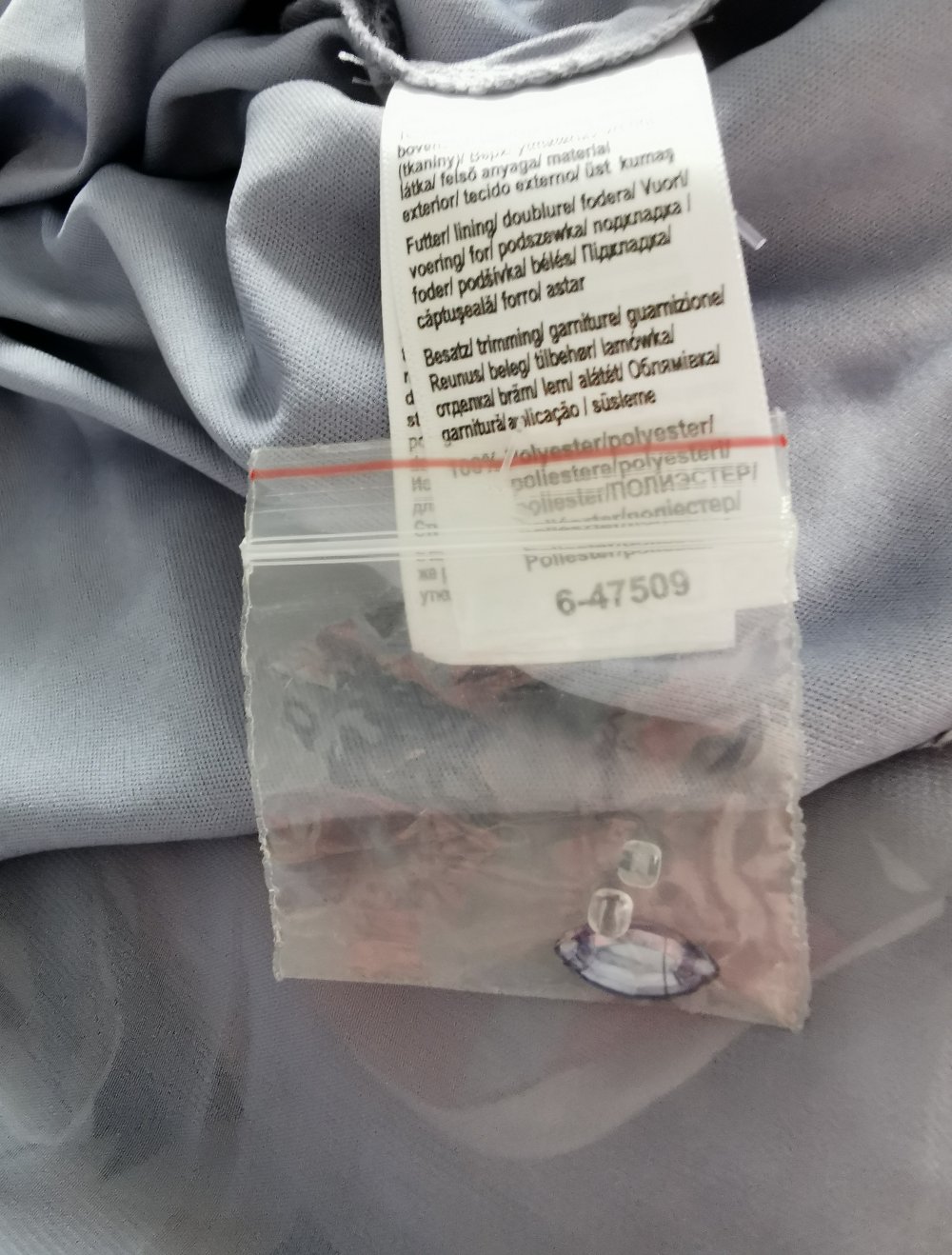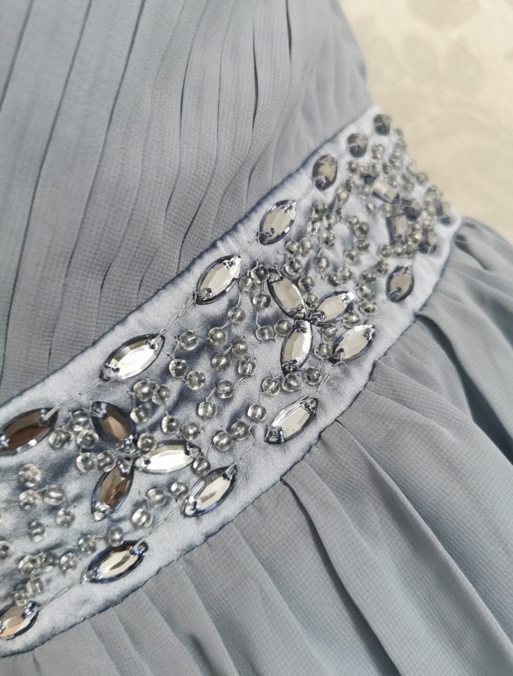 Träger und Band um die Taille aus Satin, beschmückt mit Steinchen und Perlen