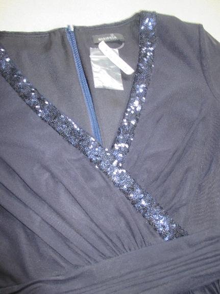 NEU mit ETIKETT Romantik Cocktail Ausgeh Anlass Ball Seiden- Chiffon Glitzer Pailletten Kleid "Mariposa" Gr. 36/ S dunkel- nacht- blau