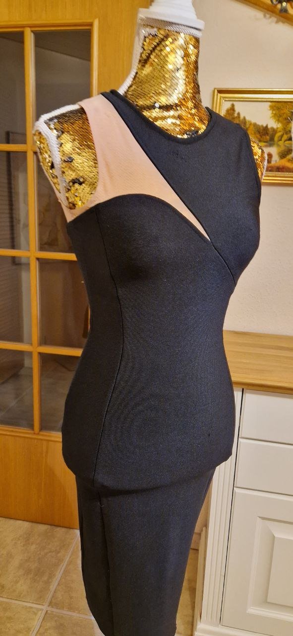 Schönes schwarzes Gestricktes Kleid, Partykleid. Größe XS