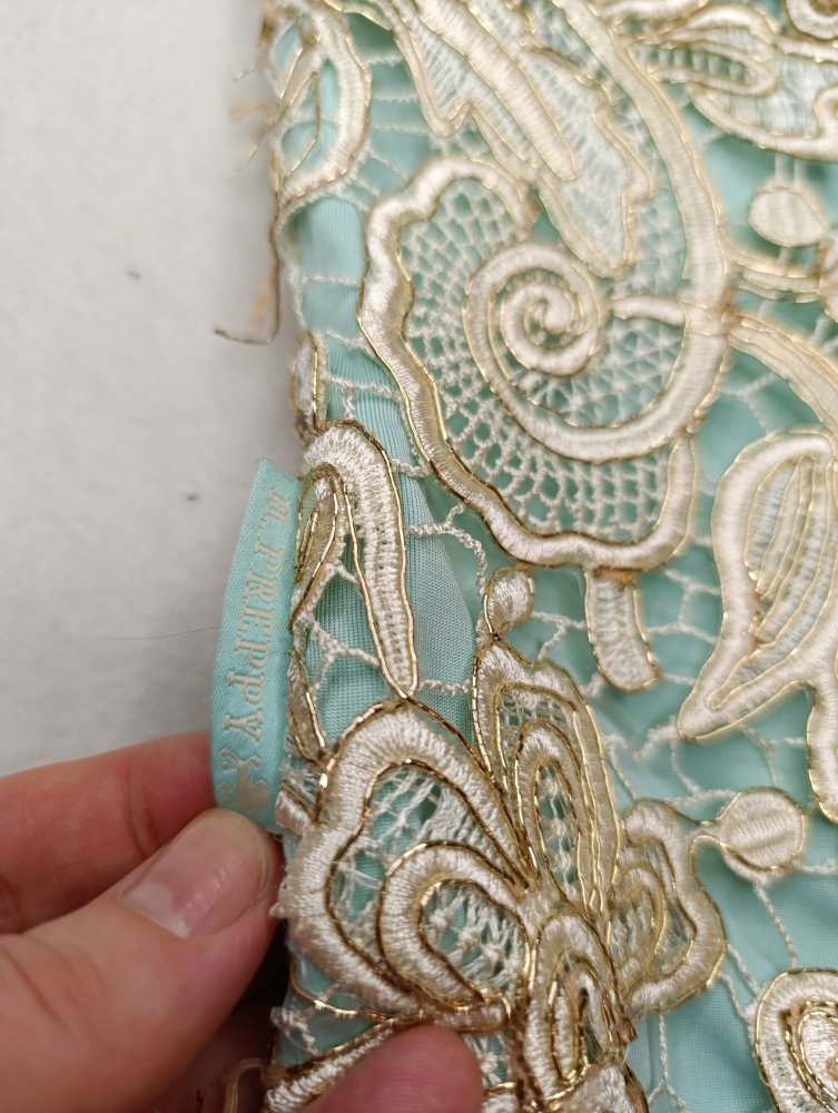 Elegantes Spitzenkleid Gr. L, Türkis/Mint mit Goldstickerei