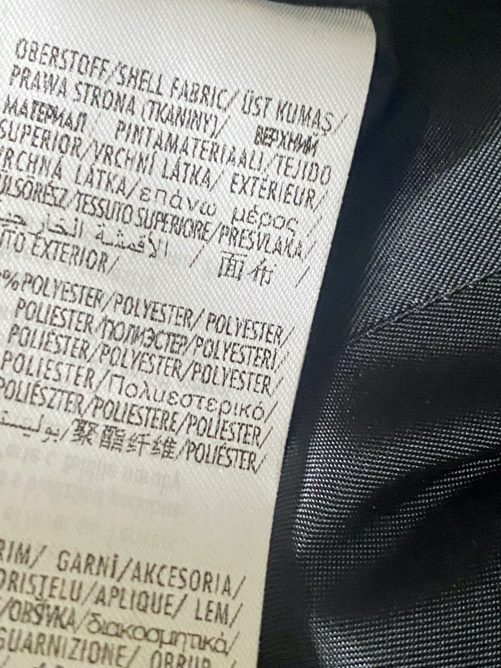 Besatz: 63 % Polyester, 33 % Viskose, 4 % Elastan