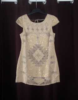 Wunderschönes Paillettenkleid/Partykleid der Marke Sequin Mania, runder Halsausschnitt, tiefsitzender Rückenausschnitt mit verdecktem Reißverschluss und Schleife hinten, innen gefüttert (die Pailetten kratzen also nicht auf der Haut),Größe UK 12 (also Medium).
