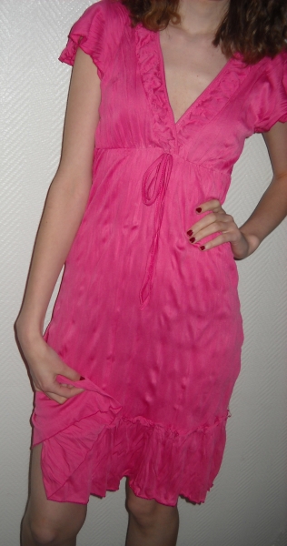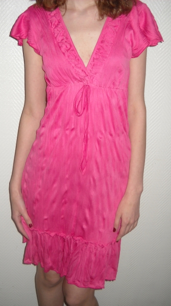 Colour Blocking Party Cocktail Abend Kleid h m dunkel pink Rüschen Puffärmel 34 36 XS S