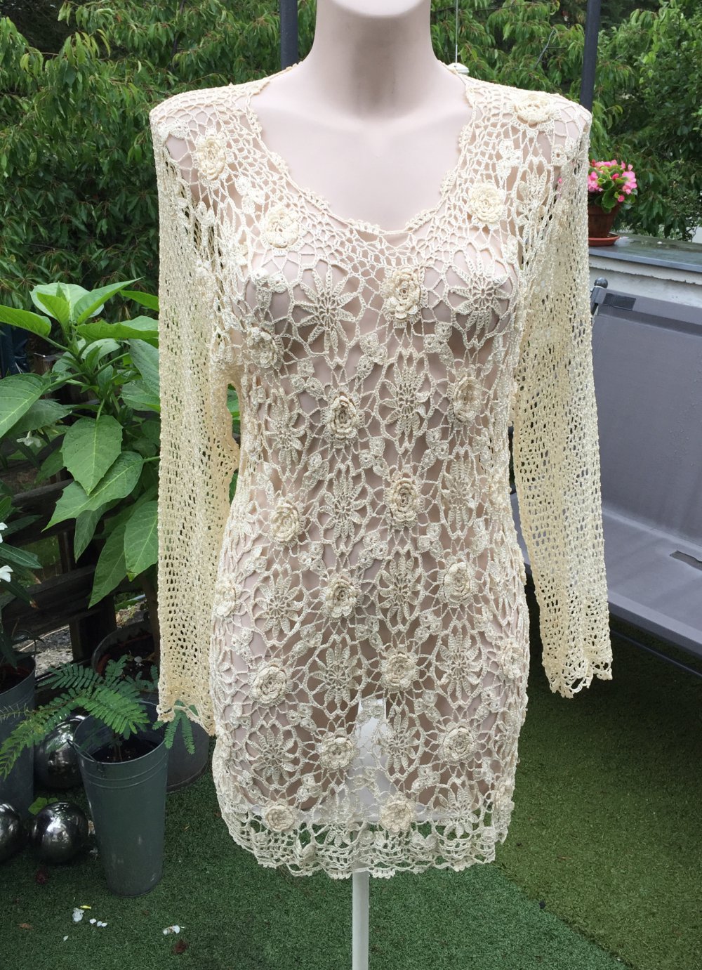 Filigranes Hippie Häkelkleid / Tunika / Strandkleid von René Derhy.