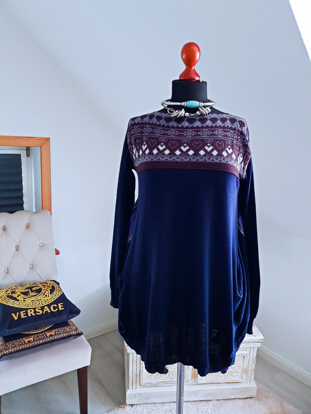 HIGH USE Damen Kleid blau braun 100%Wolle Ballonkleid Strickkleid Gr.S-M