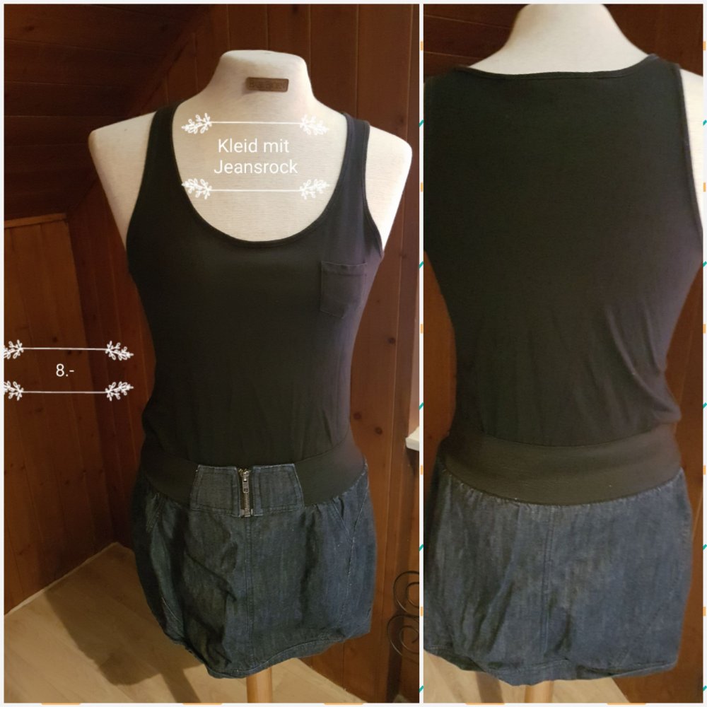 Oben schwarzes Kleid mit integriertem Jeansrock unten