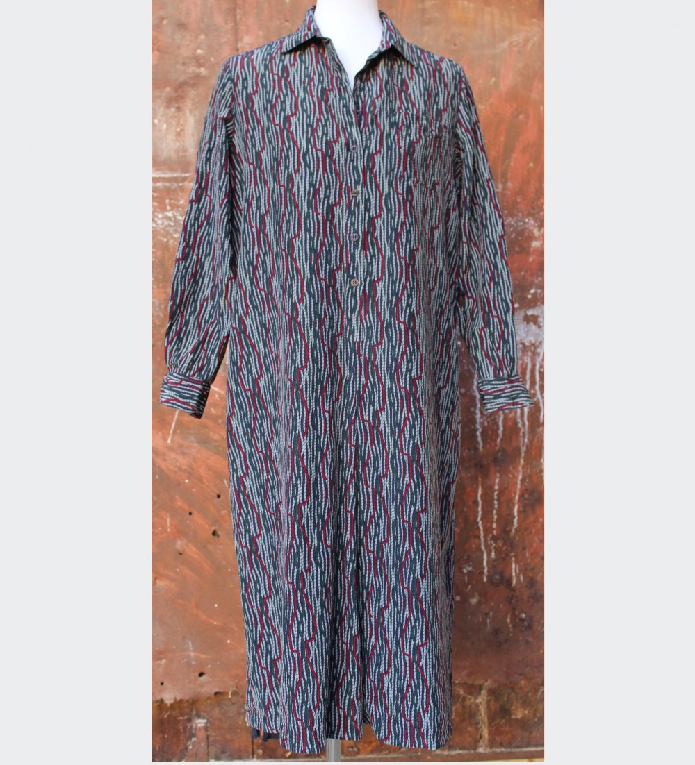 *) Es handelt sich um ein Kleid, das in den Farben dunkelblau, dunkelgrün, rot und grau gehalten ist.