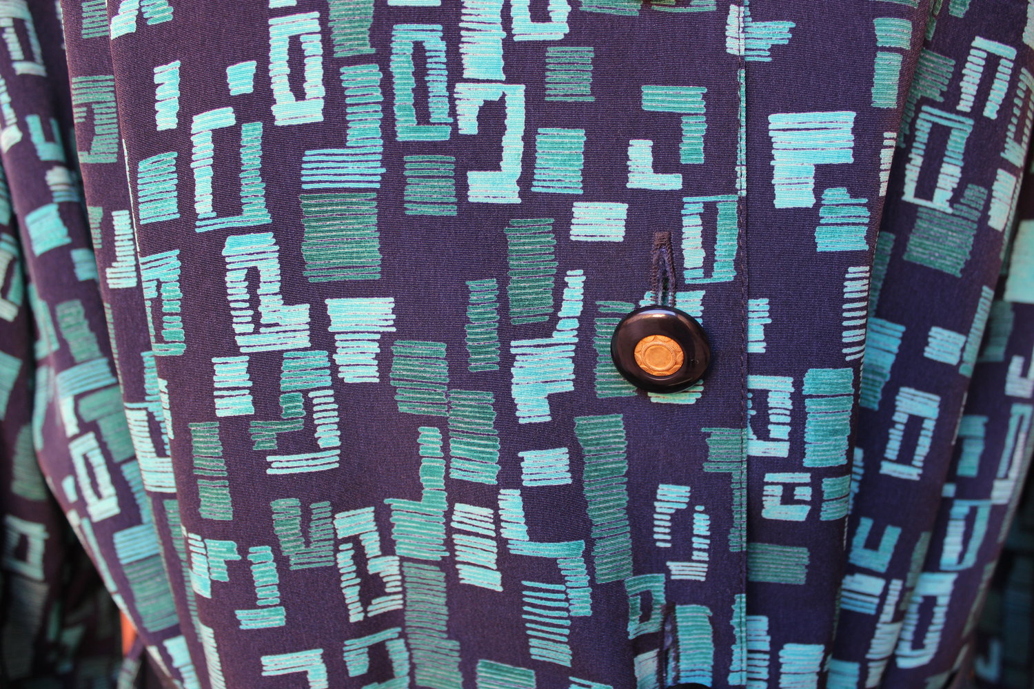 *) mit einem türkisgrünen bzw. türkisen Muster aus geometrischen Figuren (Rechtecken?).