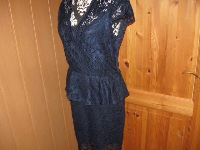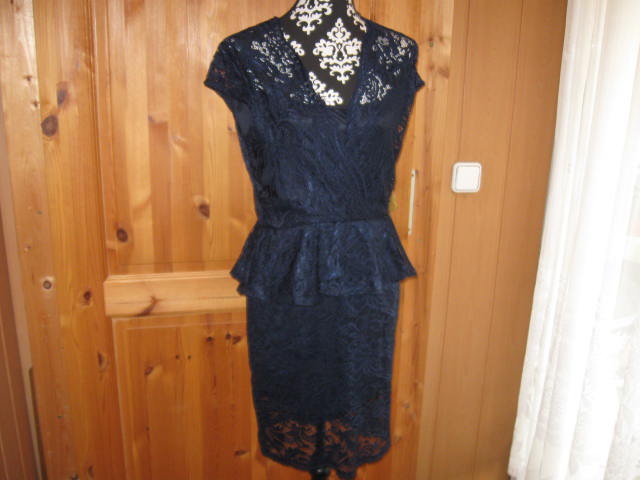 Biete dieses traumhafte, festliche Spitzen Schößchen Kleid. Dieses Kleid ist unterfüttert, von der Größe her, ist es eine L, fällt aber etwas kleiner aus, deswegen muss ich mich auch trennen. Der genaue Farbton wäre ein Marineblau. Zu jedem festlichen Anlass einsetzbar, einfach ein AUGENSCHMAUS!!! Hier einige Maßangaben: