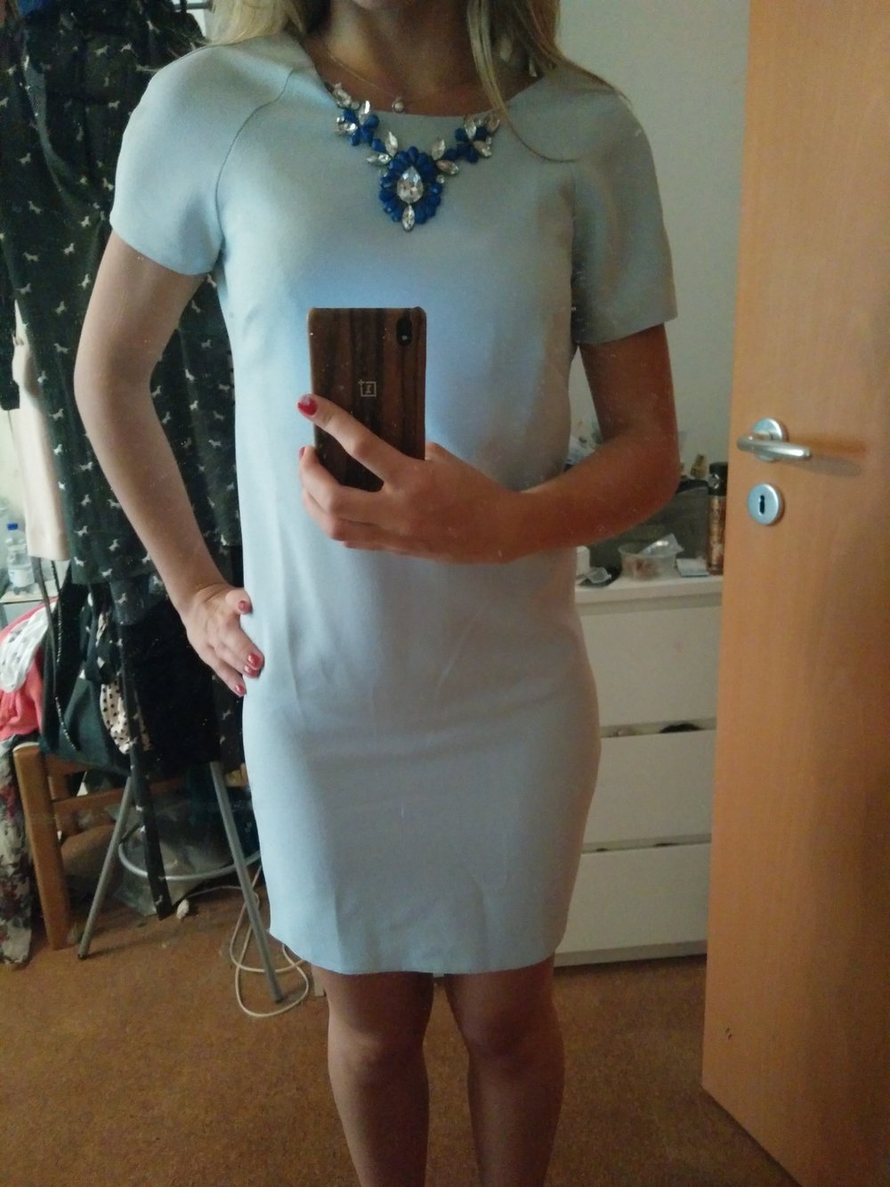 Hellblaues Kleid mit Kette von Primark Hellblaues Kleid mit Kette von Primark Hellblaues Kleid mit Kette von Primark
