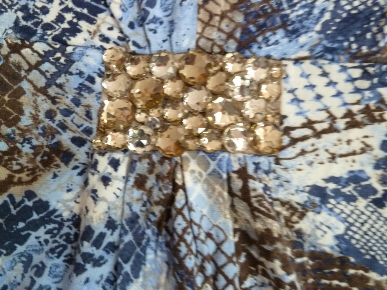 Leichtes Shirtkleid Muster Kleid YORN 42 Strass Karstadt Blau Weiß TOP