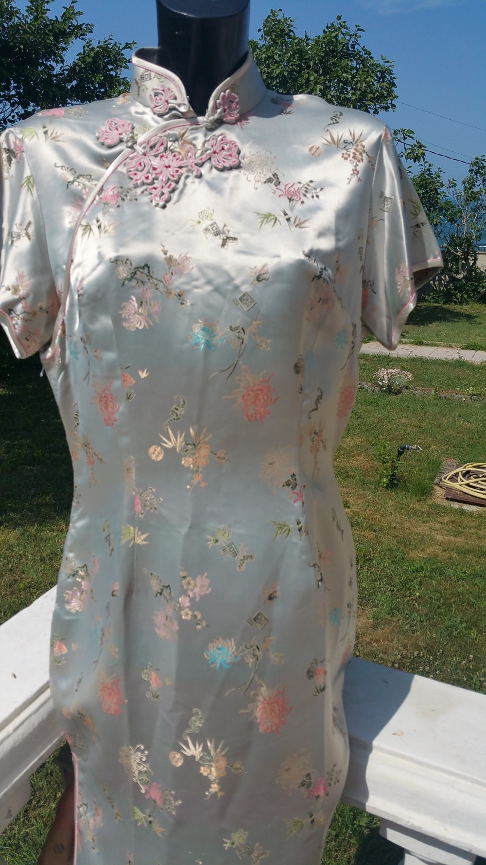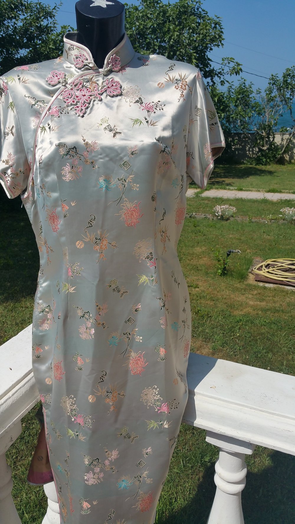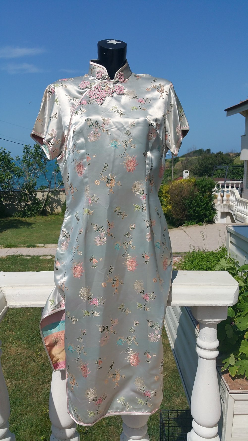 Silbergraues chinesisches Vintage-Kleid von Peony D/ EU-Größe 42 Silbergraues chinesisches Vintage-Kleid von Peony D/ EU-Größe 42 Silbergraues chinesisches Vintage-Kleid von Peony D/ EU-Größe 42 Silbergraues chinesisches Vintage-Kleid von Peony D/ EU-Größe 42
