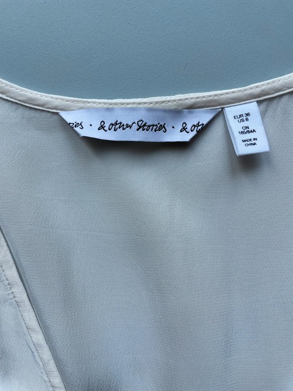 An einem Ärmel ist ein Fleck/bzw. eine leichte Verfärbung, siehe letztes Bild, man muss aber sehr genau hinschauen und beim Tragen sieht man es garnicht.