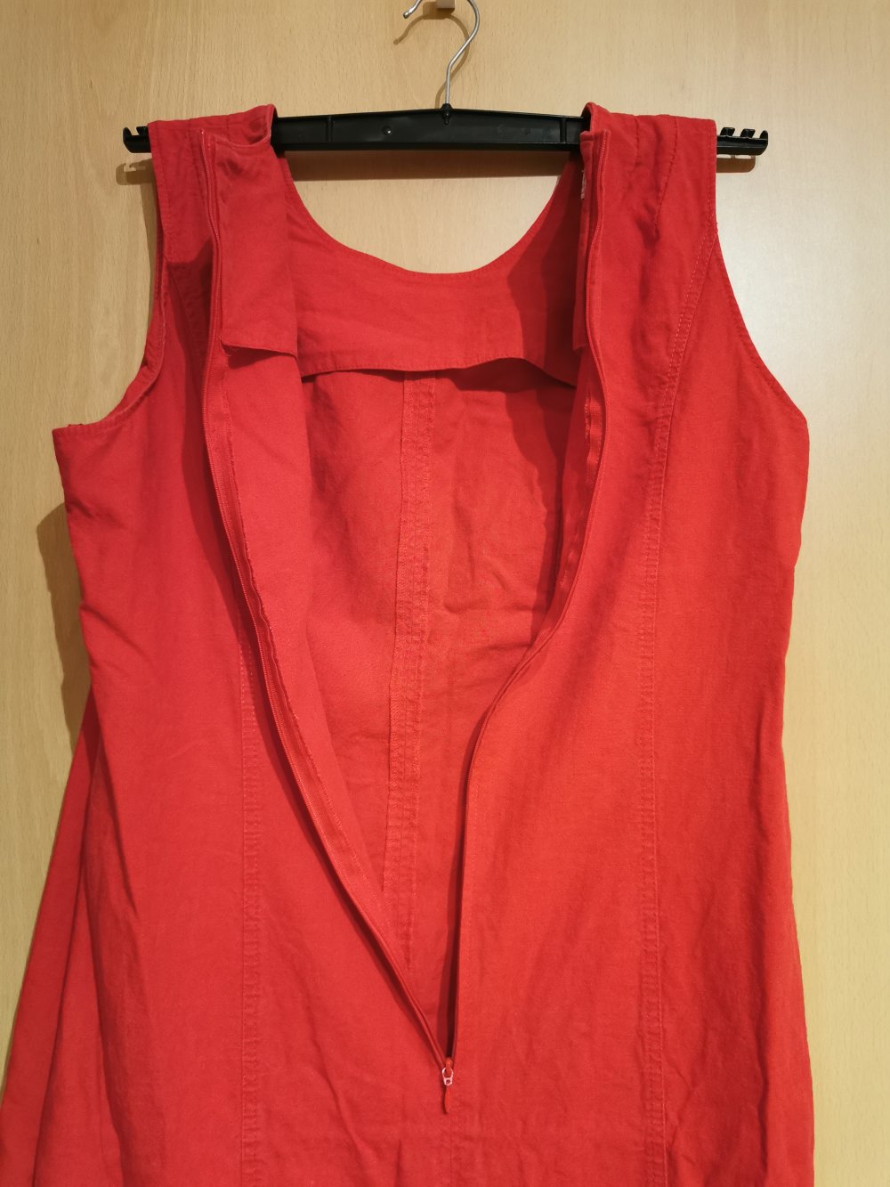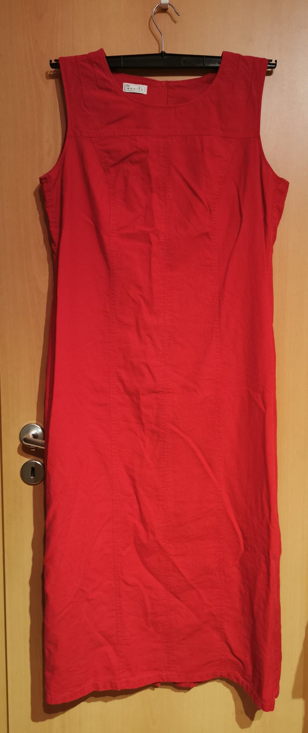 Ich biete dieses rote Kleid an. Es ist von Bonita und hat die Größe 46. Das Kleid hat unten hinten einen kleinen modischen Schlitz und am Rücken einen langen Reißverschluss. Das Kleid ist getragen und wirkt etwas vergriffen am Stoff am unterem Bund sowie am Kragen. Ansonsten ist das Kleid in einem sehr gutem Zustand.