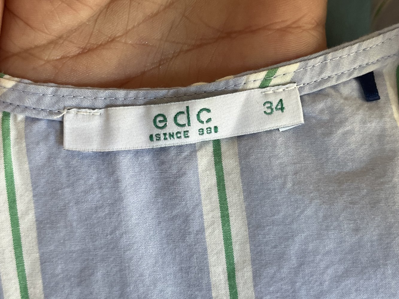 Edc Sommerkleid gestreift mit Wickel Optik Gr.34 hellblau mit grünen Streifen
