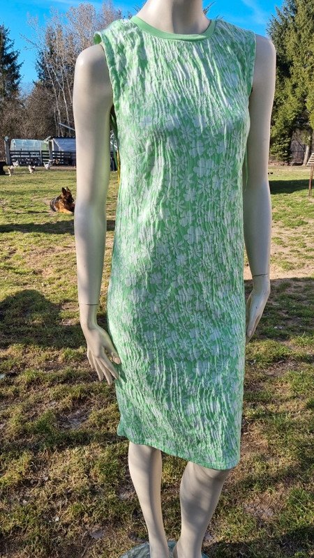 Abmessungen: von Achsel zu Achsel ca 40 cm elastischer Stoff. Taille ca 41 cm. Laenge ab Schulter ca 102 cm.