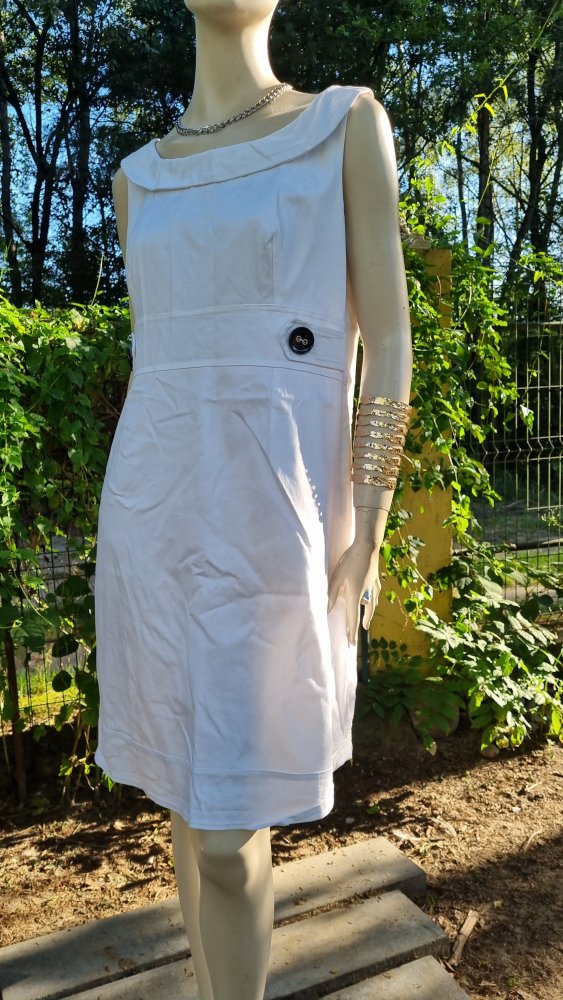 Sommerliches Etuikleid, Baumwolle, weiß mit buntem Muster, Gr. 42