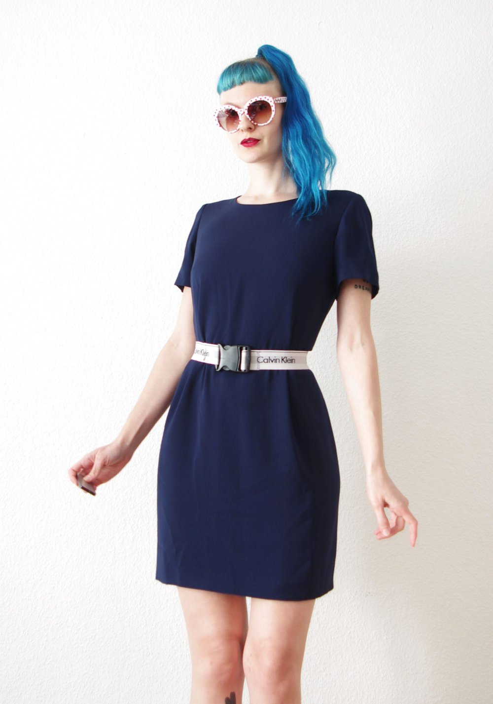 Elegantes dunkelblaues Etuikleid Gr. 40 42 M Business retro chic