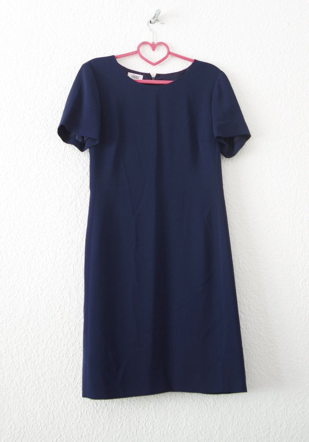 Wunderschönes simples Etuikleid, besticht durch seine einfache Eleganz, perfekt für Retrolook und Business. Normalerweise etwa knielang. Kann aufgepeppt werden mit einem breiten Taillengürtel in Kontrastfarben, sonst ein toller minimalistischer Look. Toller Schnitt mit kurzen Ärmeln und Reißverschluss im Rückenteil, kleiner Gehschlitz hinten. Komplett unterfüttert. Habe es bloß ein Mal getragen, da es mir leider etwas zu groß ist. Stoff ist nicht stretchig. Neuwertiger Zustand.