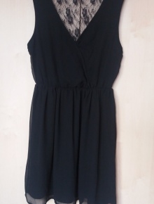 Schwarzes kurzes Kleid mit Rückenteil aus transparenter Spitze