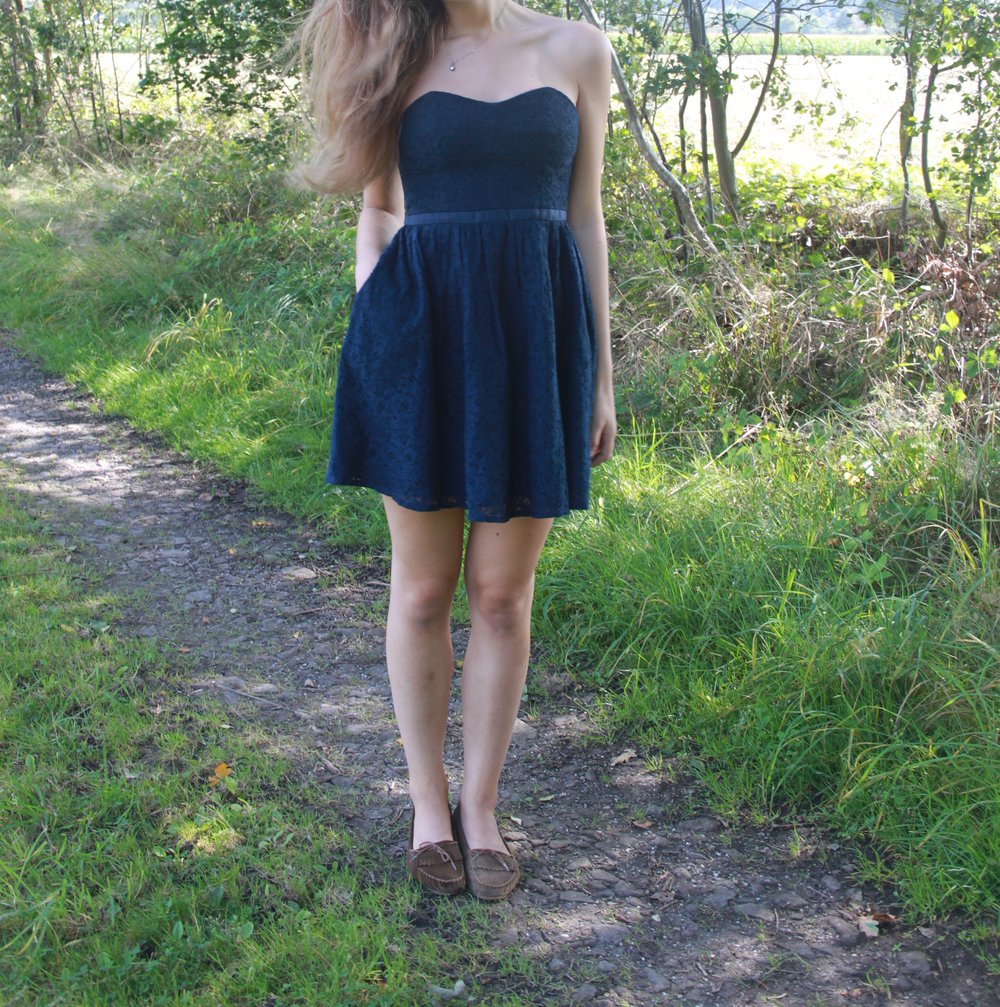 TRAUM Bandeaukleid aus dunkelblauer Baumwollspitze mit versteckten Rocktaschen
