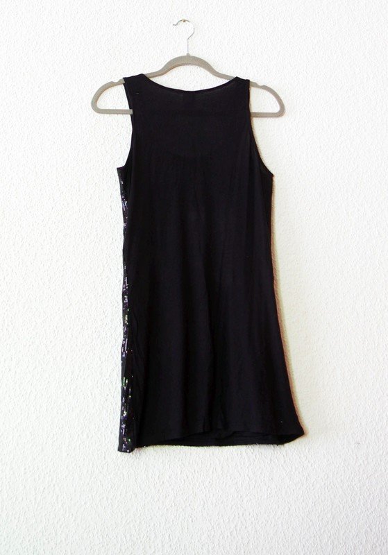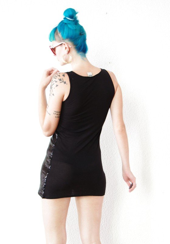 Eigenschaften: Minikleid/Longtop, Vorderseite komplett mit kleinen schimmernden Pailletten besetzt, stretchig, Tanktopschnitt, minimalistisch im Schnitt - perfekt für Alltag, Raves, Partys, Festivals