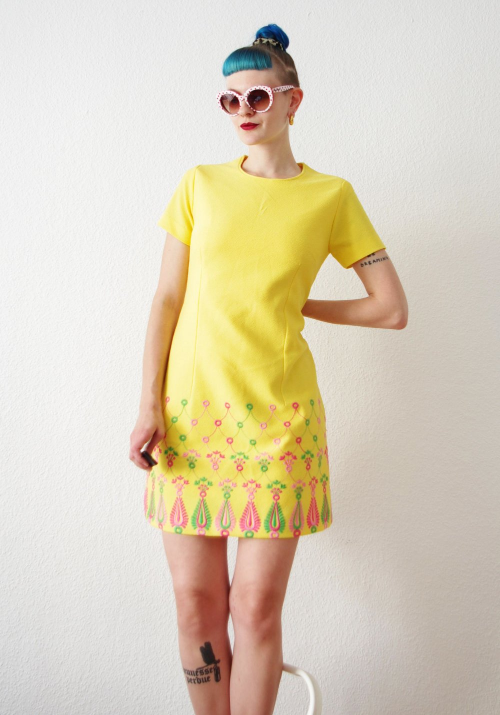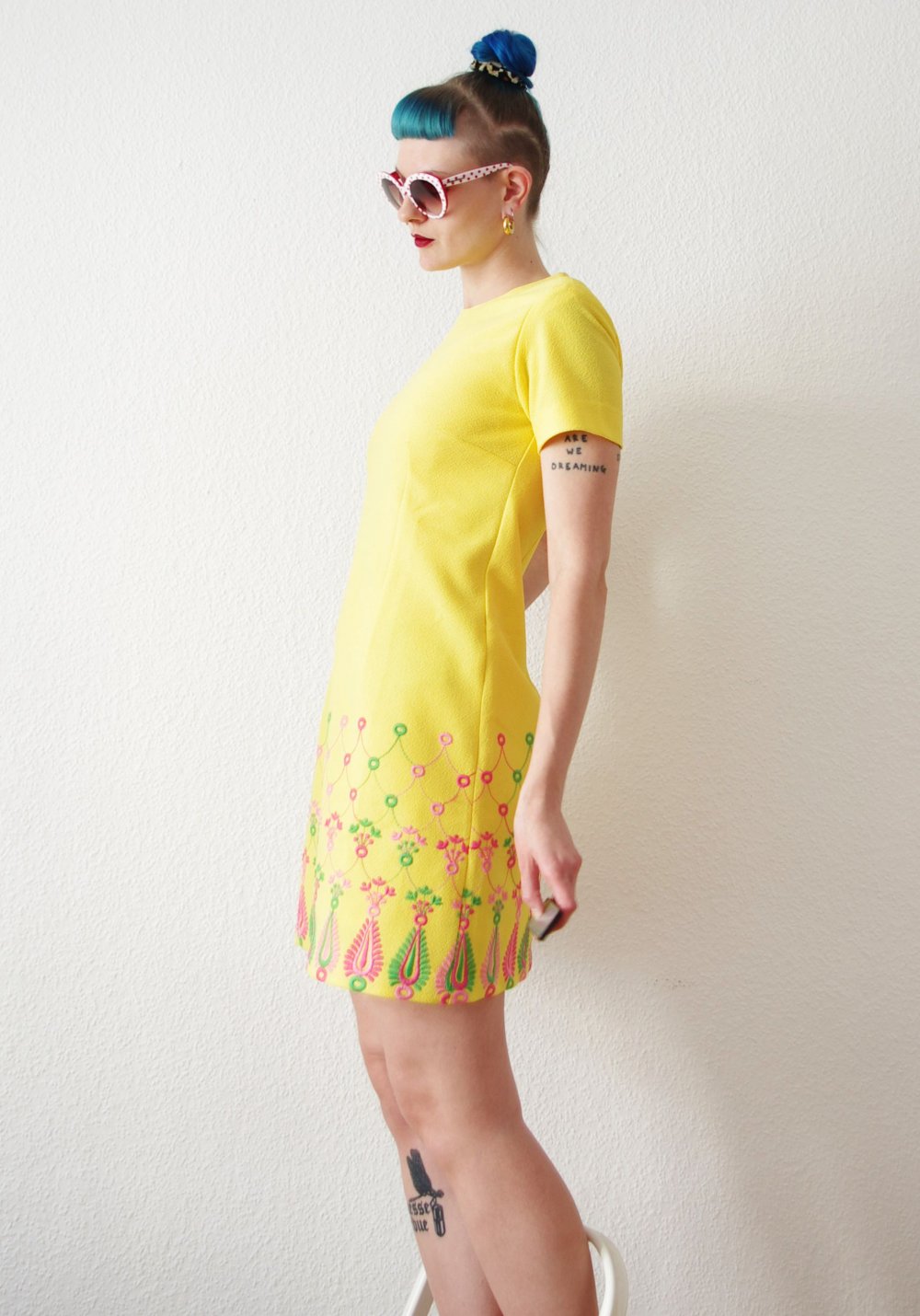 Sonnengelbes Pinup vintage Kleid Gr. 38/40 Stickerei Boho retro Stickerei maßgefertigt