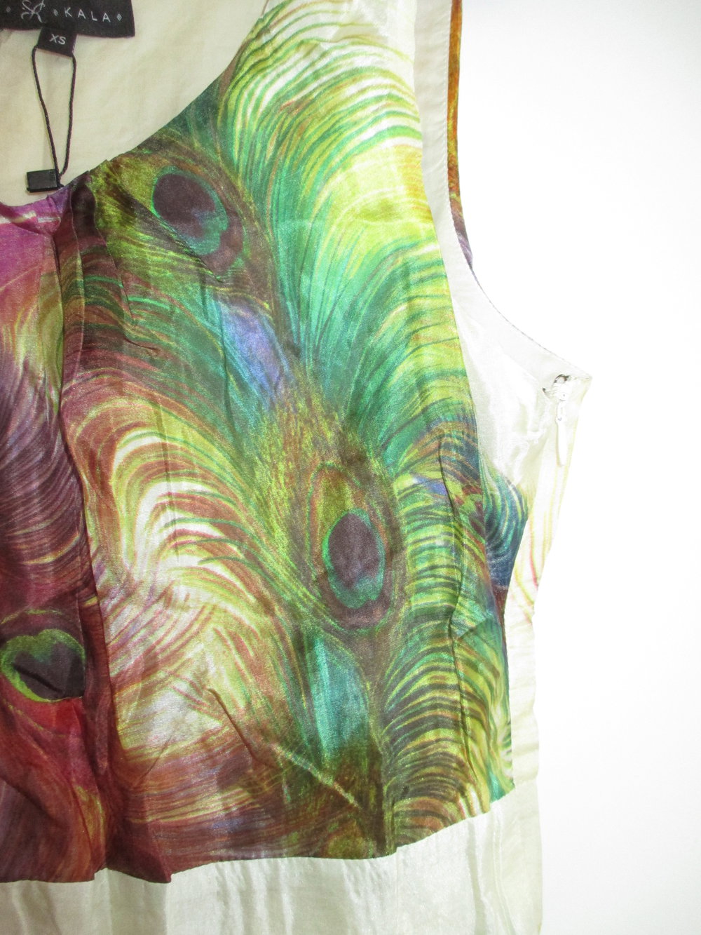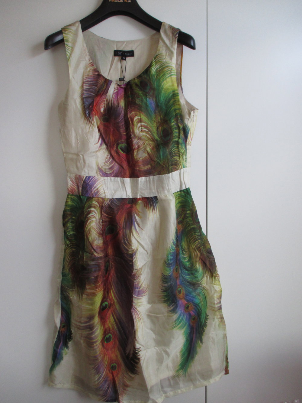 Uttam London; Boutiqueware, ausgefallenes Seidenkleid ( 100 % Seide!) mit Pfauenfeder Print, Gr. 34 , Kalla, Marie Dress, Neu mit Etikett