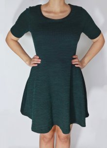 Dunkelgrünes Skaterkleid mit Rundhalsausschnitt, Tropfenausschnitt am Rücken und Kunstledernähten.