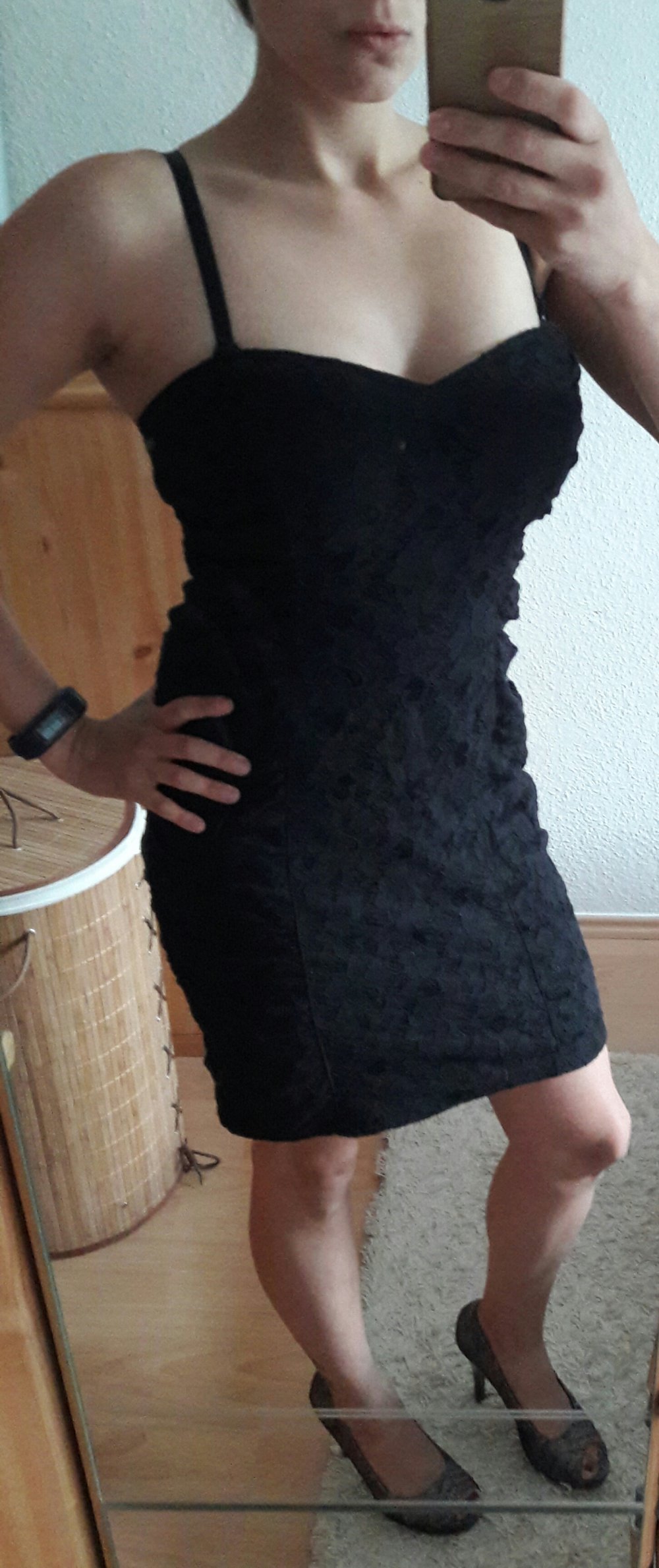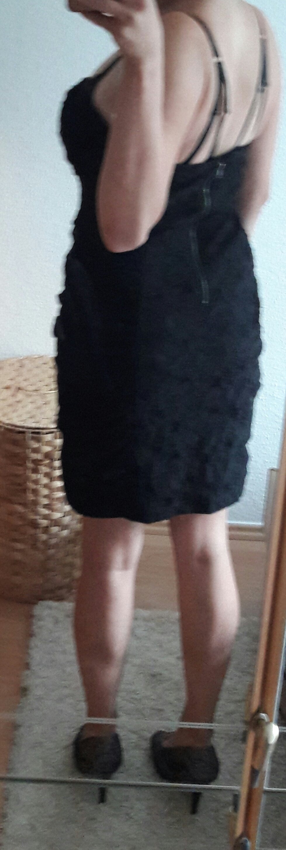 Ich habe dieses Kleid selbst hier ertauscht, doch leider ist es mir etwas zu locker im Brustbereich, da trägerlos. Es passt schätzungsweise einer 38/40. Der Stoff ist etwas "gröbere" Spitze und das Kleid ist blickdicht, da ein schwarzer Unterstoff vorhanden ist.
