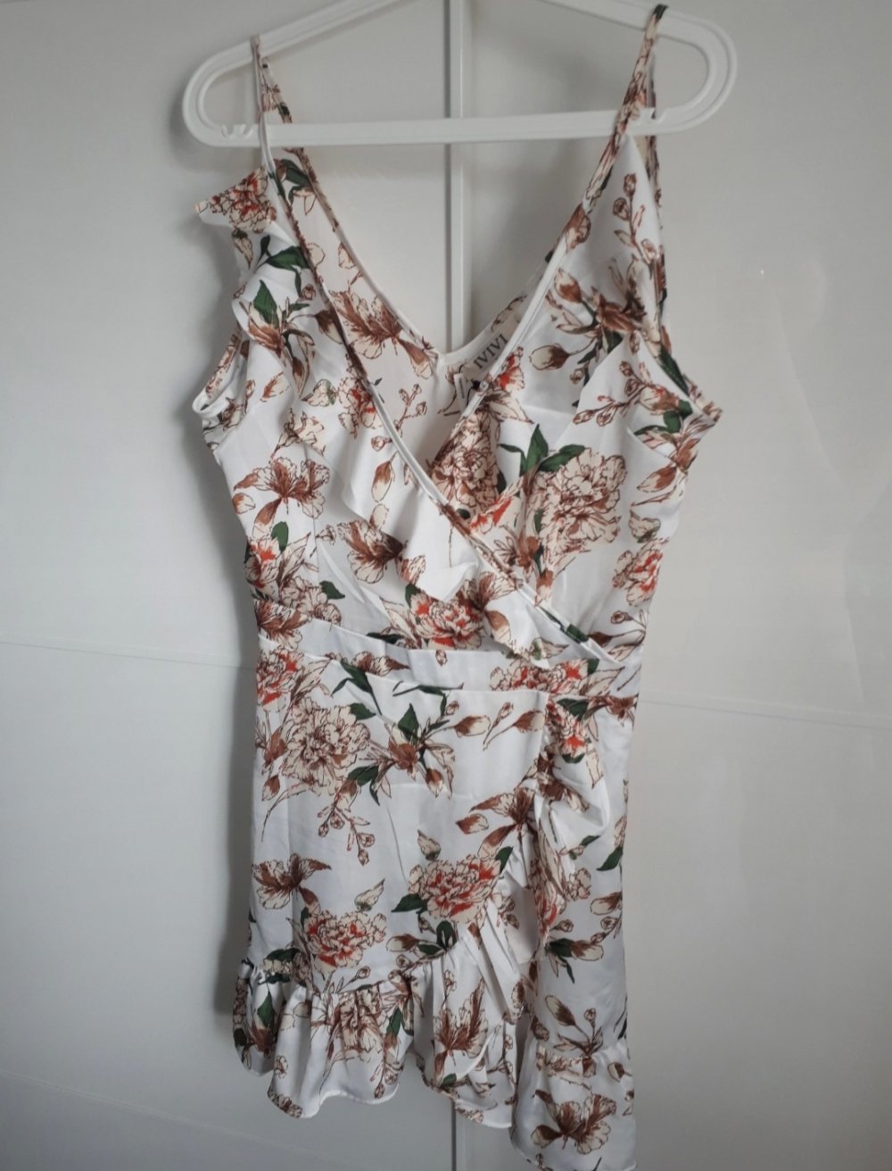 Kleid Sommerkleid Coctailkleid Partykleid 38 40 S M braun weiß Länge 81 cm dehnbar