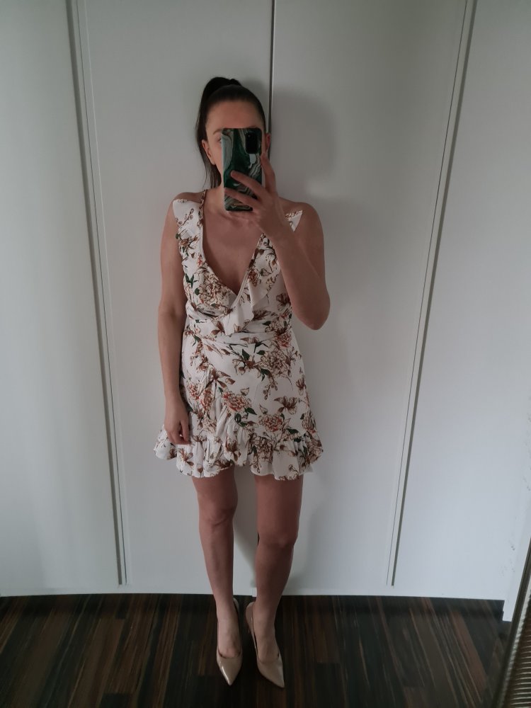 Das Kleid sieht bestimmt auch toll mit Lederjacke und Boots aus oder weiße Sneaker.