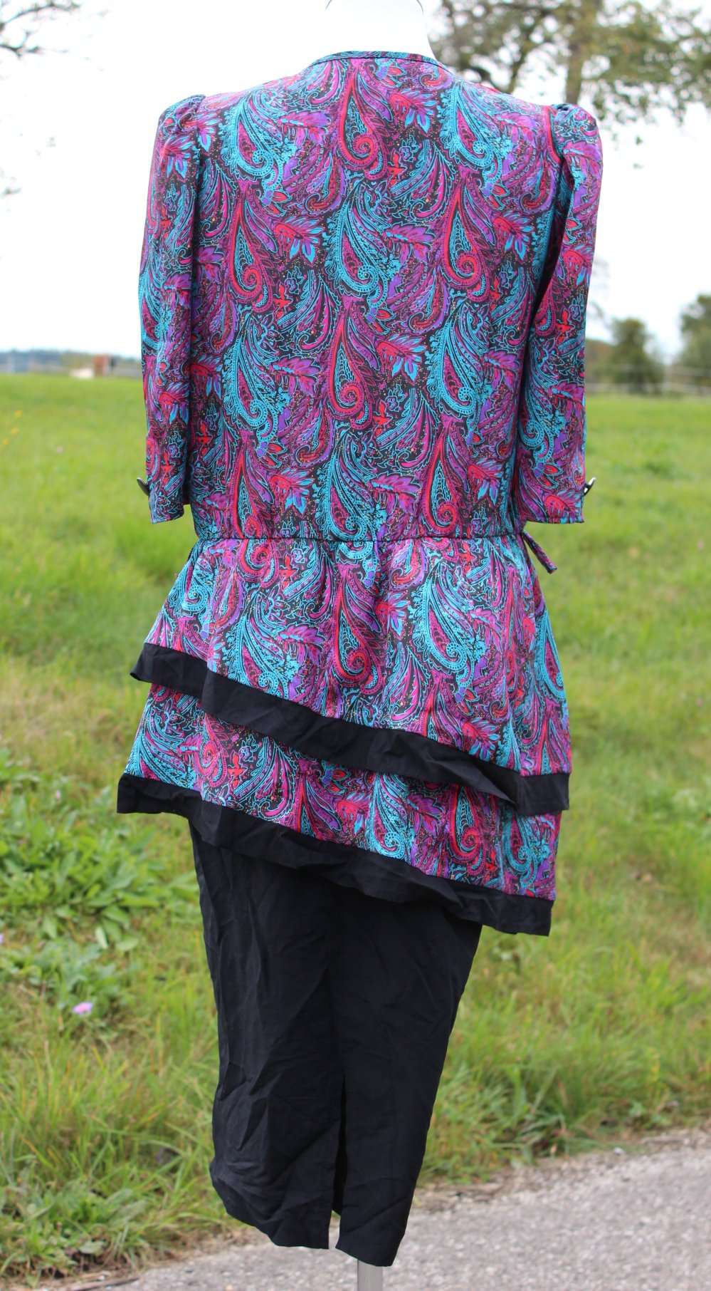 True Vintage, Vintagekleid, 1980er, Eighties, Paisleymuster, Schulterpolster, Puffärmel, tailliert, Schößchen