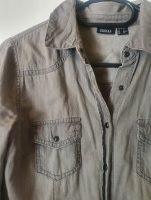 Sehr enganliegend. Tolle Details, Nieten und Ausschnitt am Arm. Kleiner Kragen.