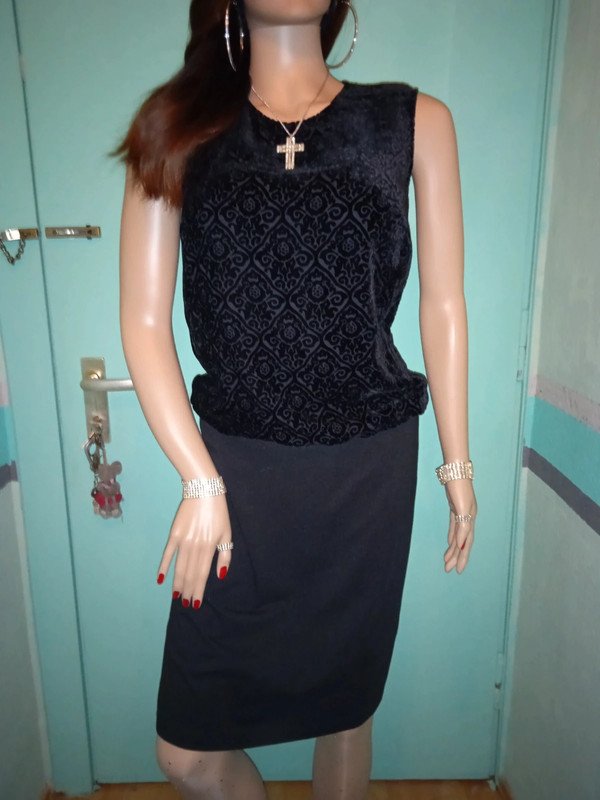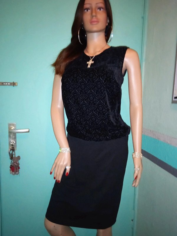 Oberteil ist aus Chiffon Stoff mit ein Muster drauf was aus Samt ist.