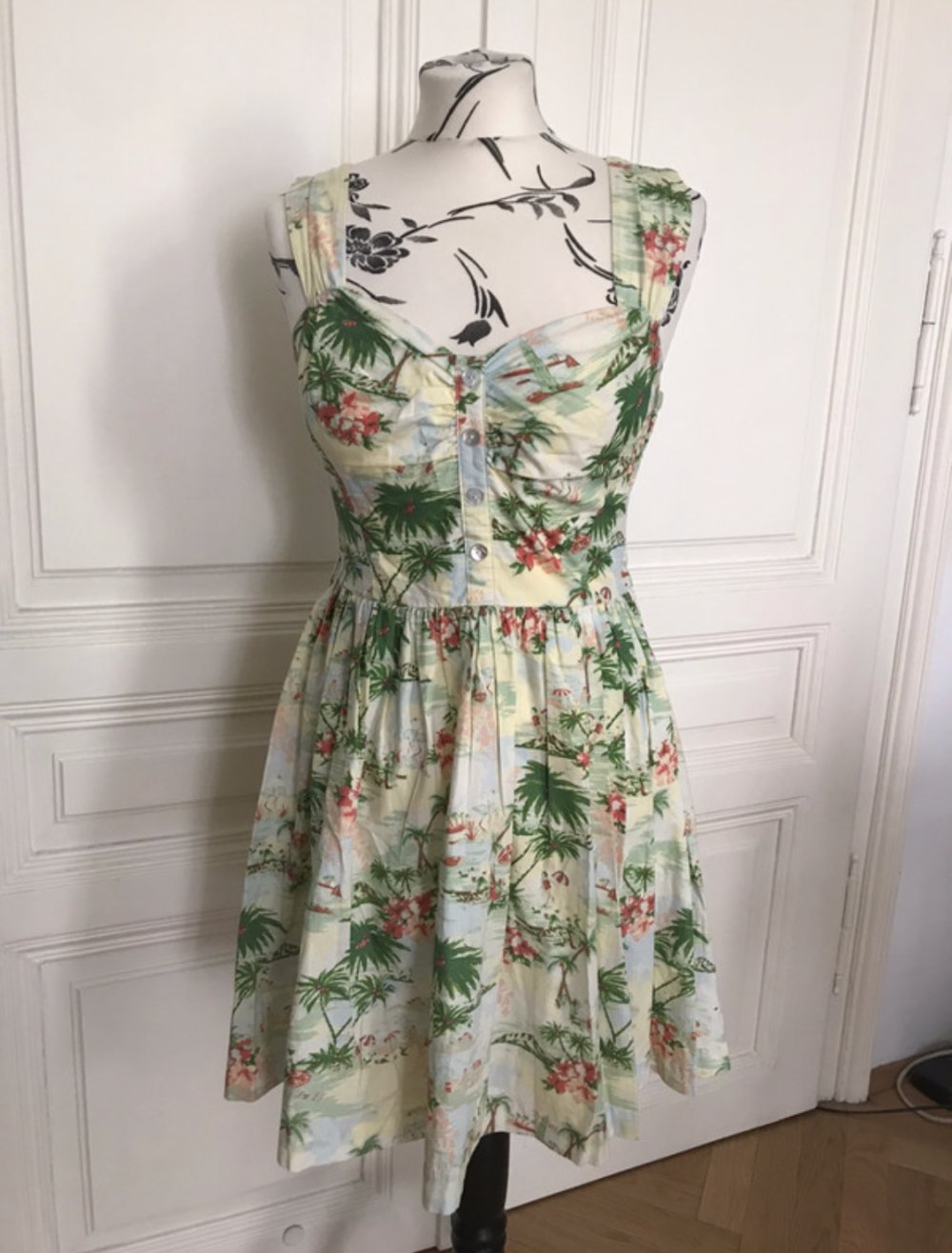 Süßes Sommerkleid mit Tropenmuster, leicht ausgestellt, von New Look, Gr. 36/38 (UK 10)