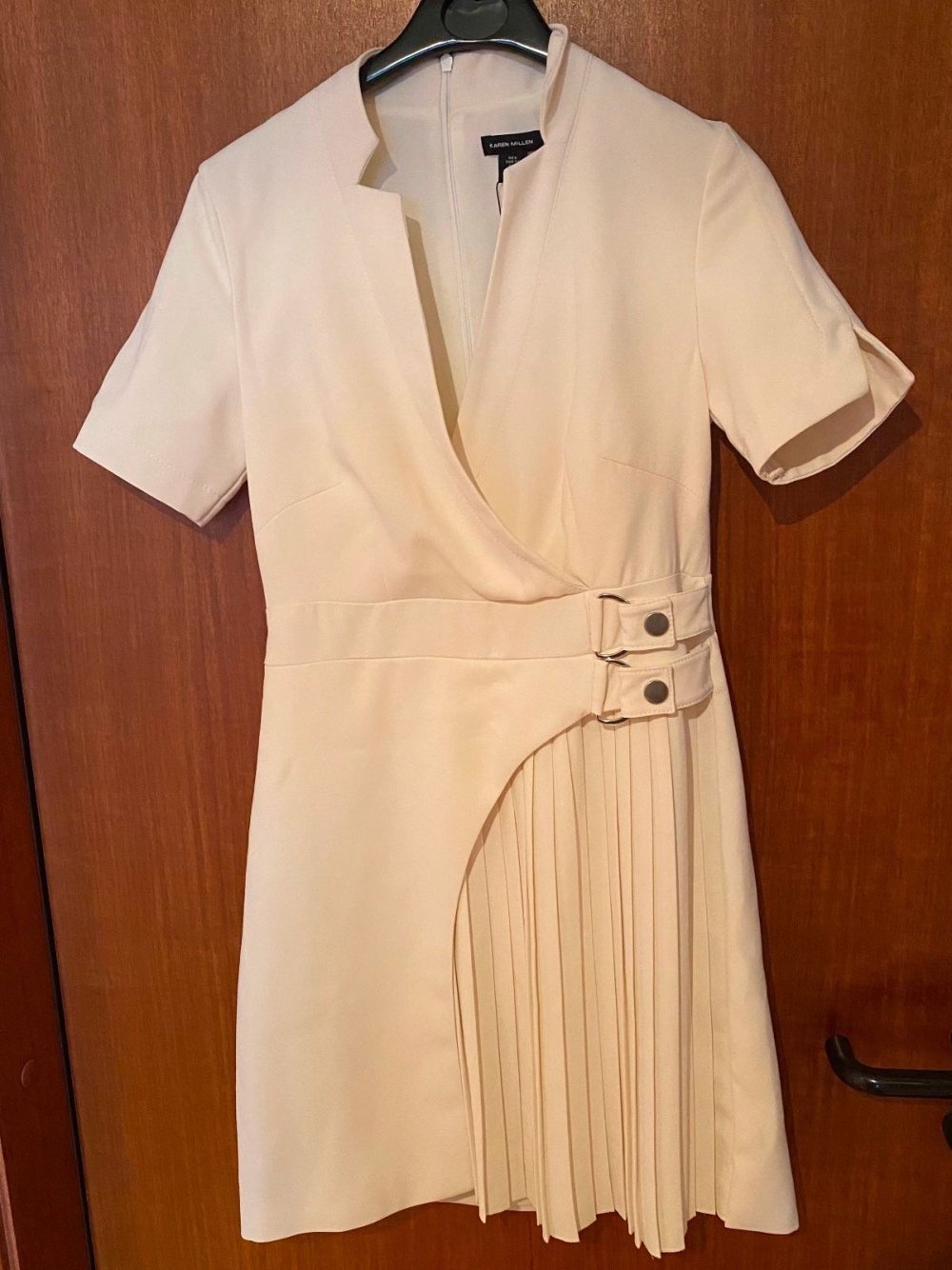Karen Millen Tailord Military Pleat Notch Neck Wrap Mini Dress XS