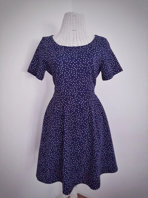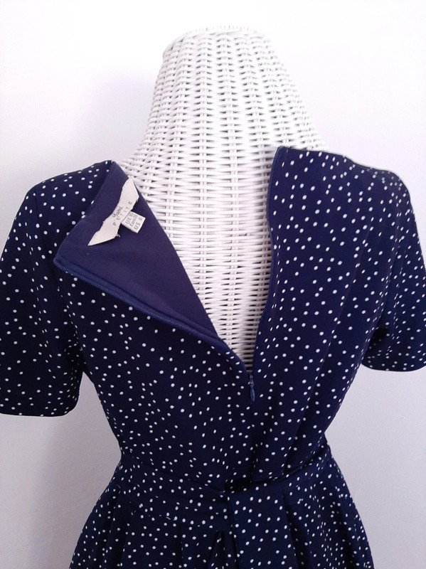 Dunkelblaues Yumi Petite Kleid mit weißen Punkten | Gr. 38 | Gepunktet | Swing Dress