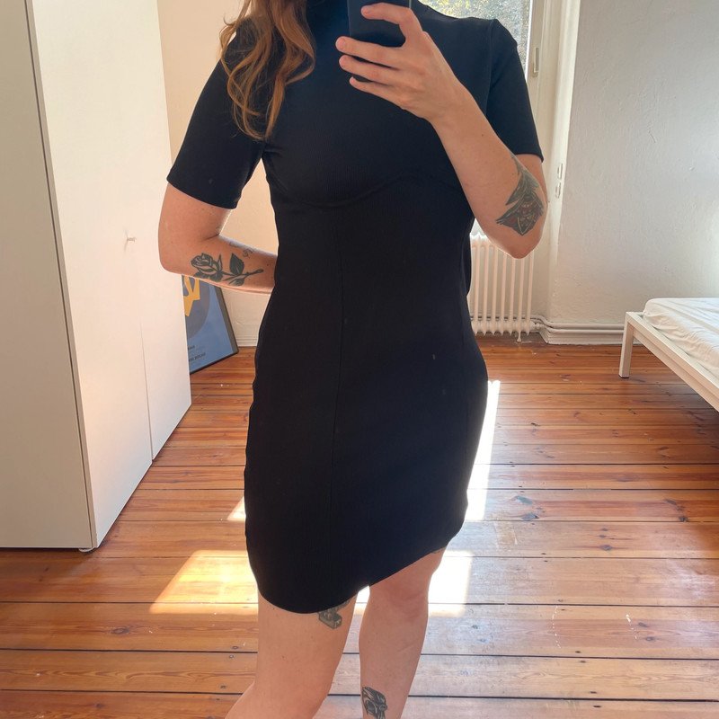 Es ist ungetragen, es lag einige Jahre in meinem Schrank rum und kam leider nie zum Einsatz, deshalb sucht es nun eine neue Besitzerin. Ich habs mit Gr. 38 auf den Bildern an.