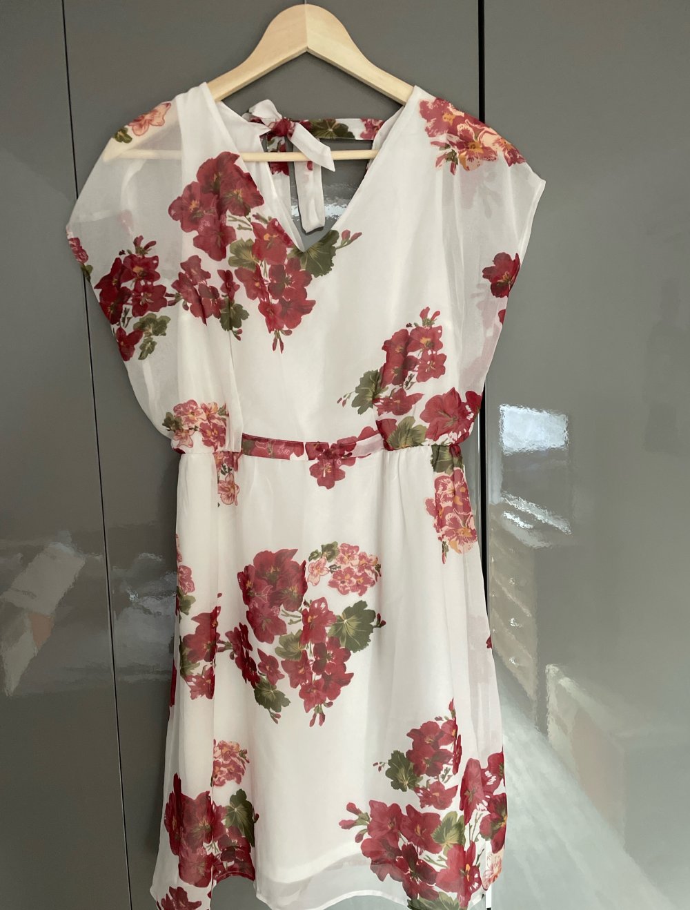 weißes Blumenkleid Gr. 40 weißes Blumenkleid Gr. 40 weißes Blumenkleid Gr. 40