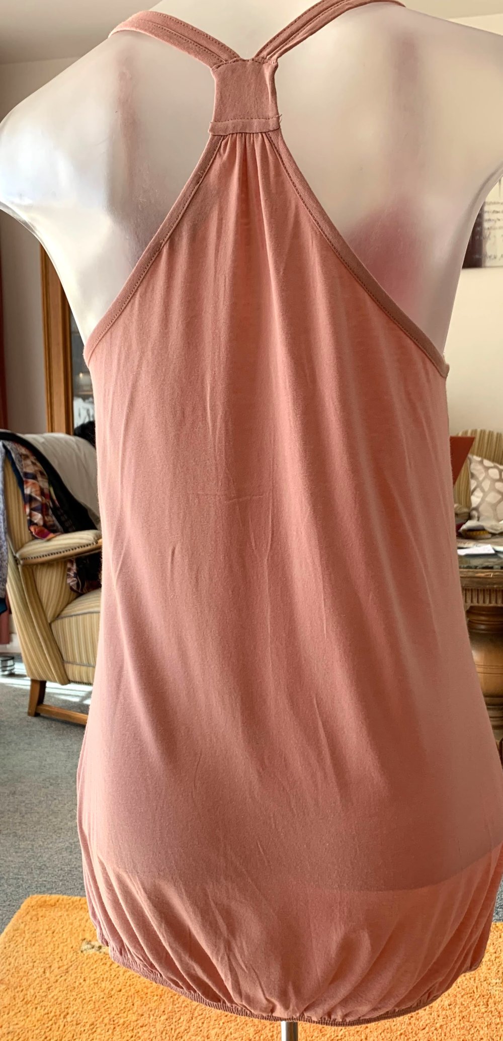 Der elastische Jersey-Stoff trägt sich wunderbar weich und angenehm. Durch den Gummizug am Saum entsteht eine modische Ballonform, die locker fällt und zugleich die Figur umspielt. Der nude-farbene Ton wirkt edel und lässt sich vielseitig kombinieren – ob mit Leggings, Skinny-Jeans oder Rock.