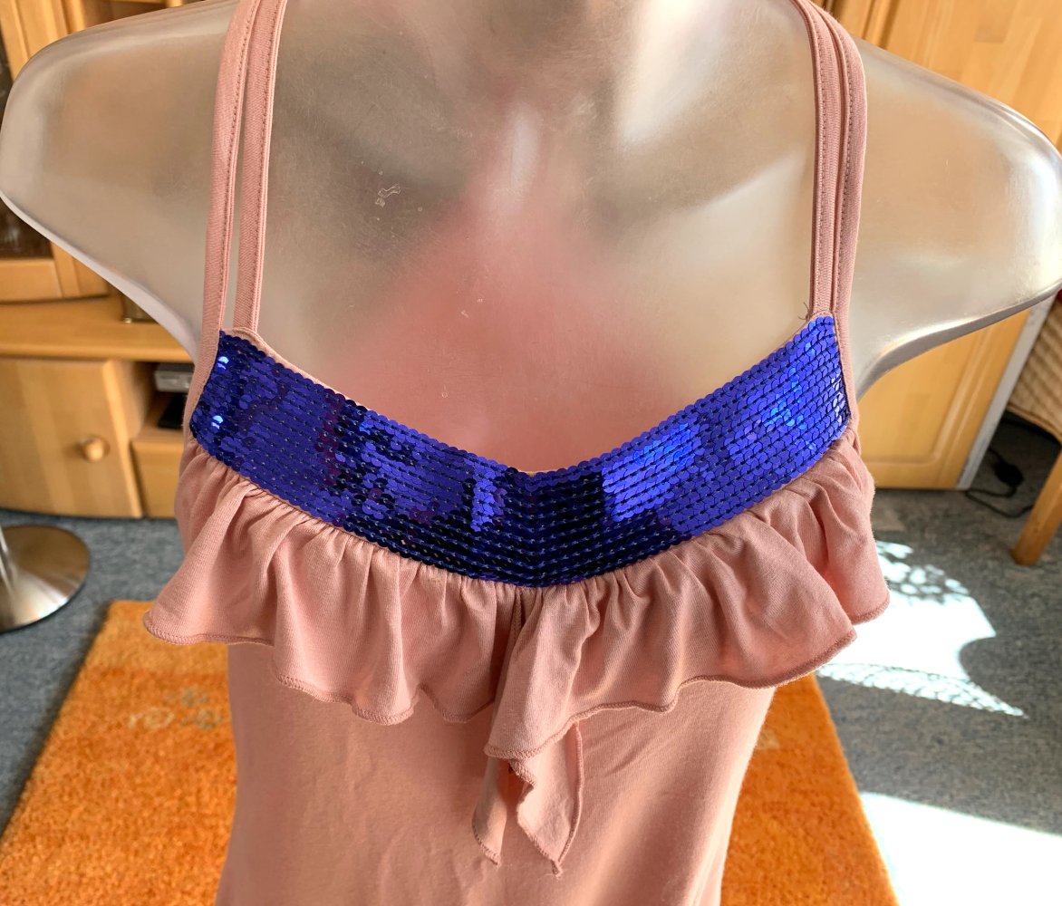 Glänzende Pailletten & Rüschen am Ausschnitt