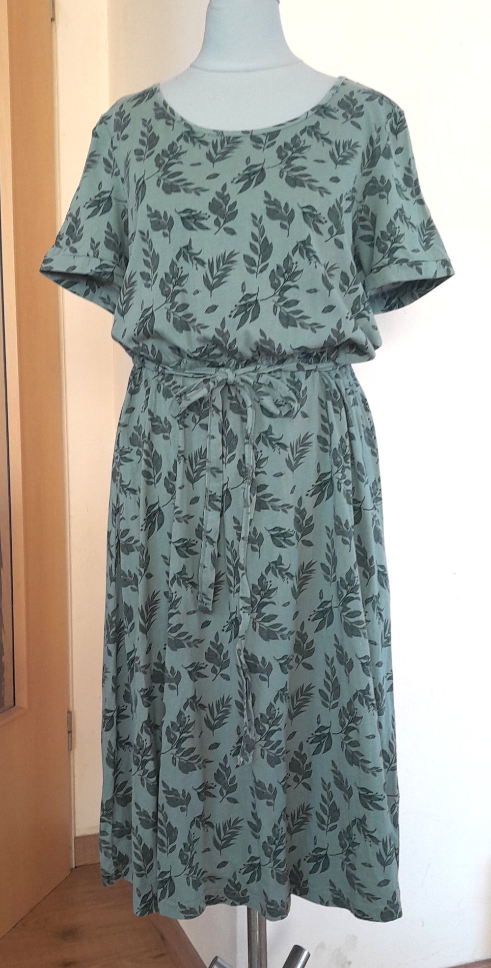 Schönes, grünes Midikleid mit Blättermuster, Gr.M