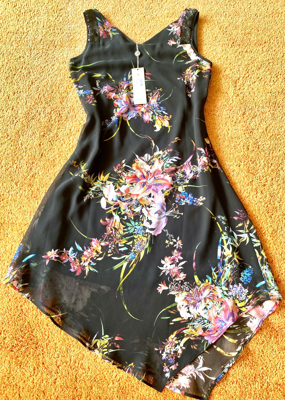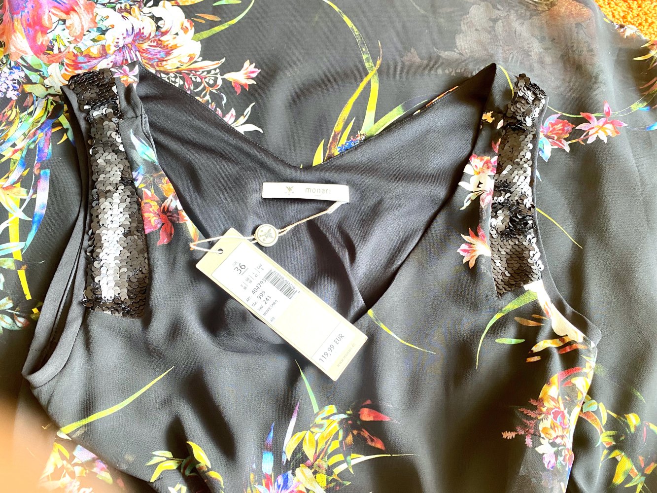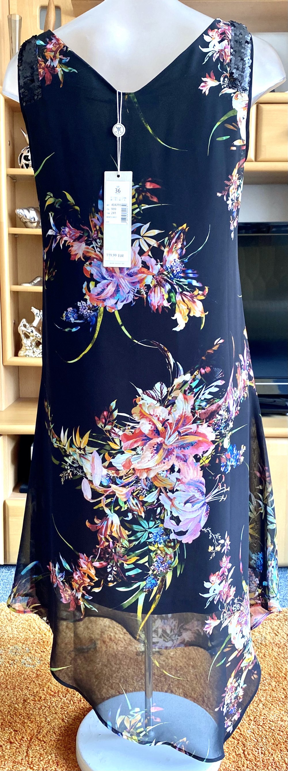 NEU Damen Sommer Kleid mit Trägern Gr.36 Zipfelig Schwarz/Bunt von Monari P.119,99€
