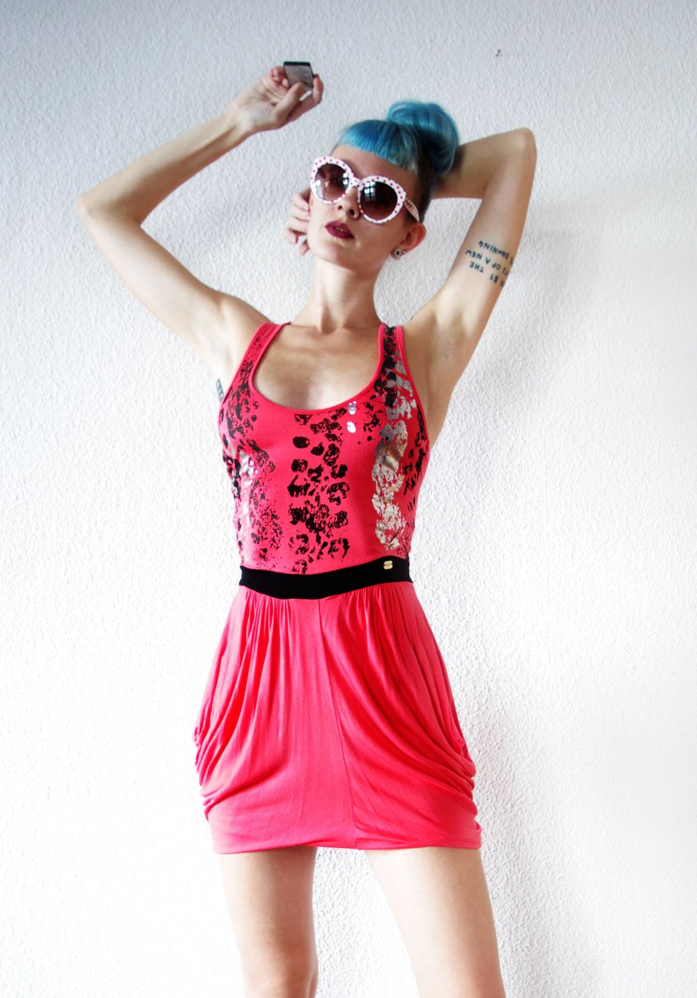 Kurzes Partykleid Gr. 36 38 S M koralle silber metallic schwarz Leomuster Racerback