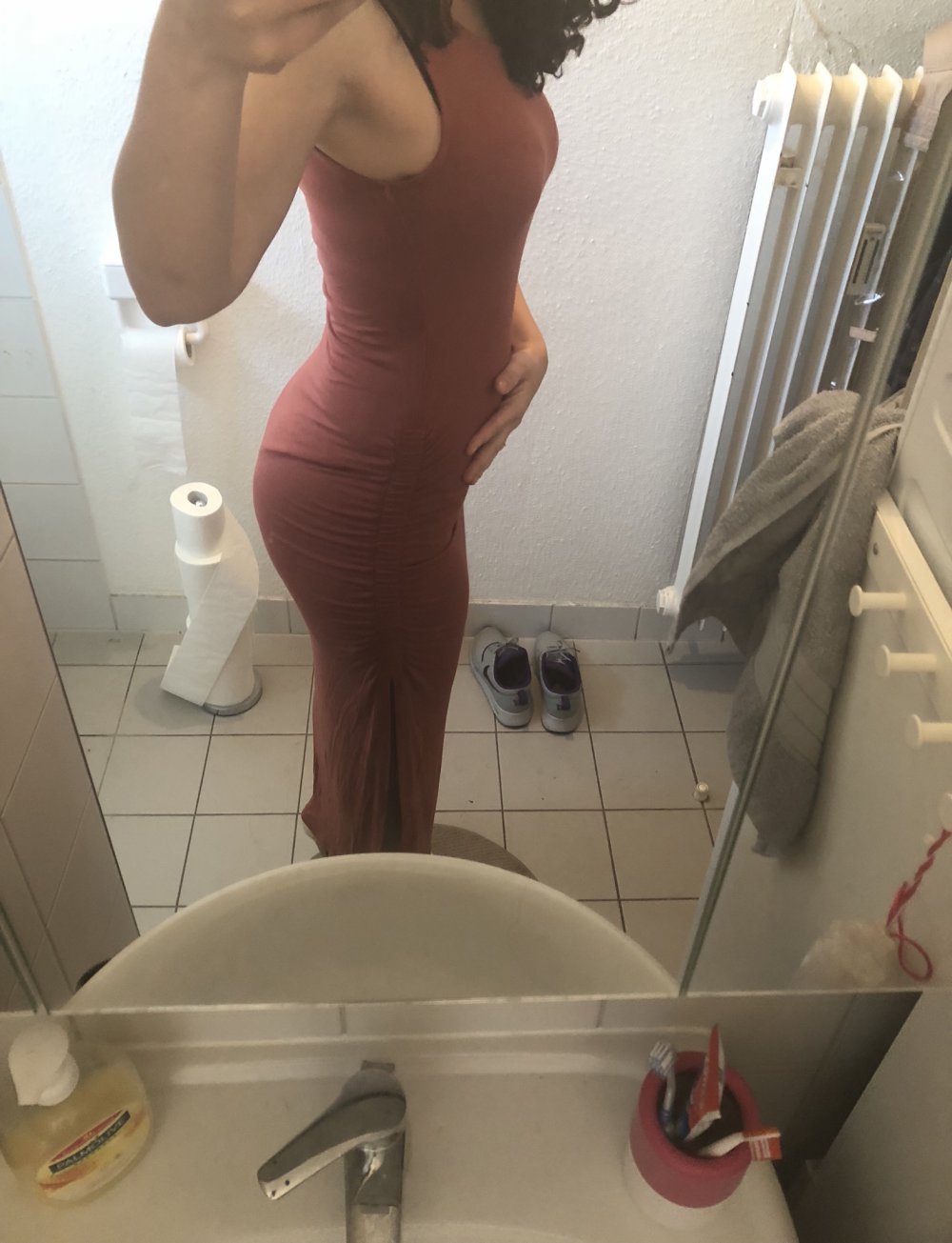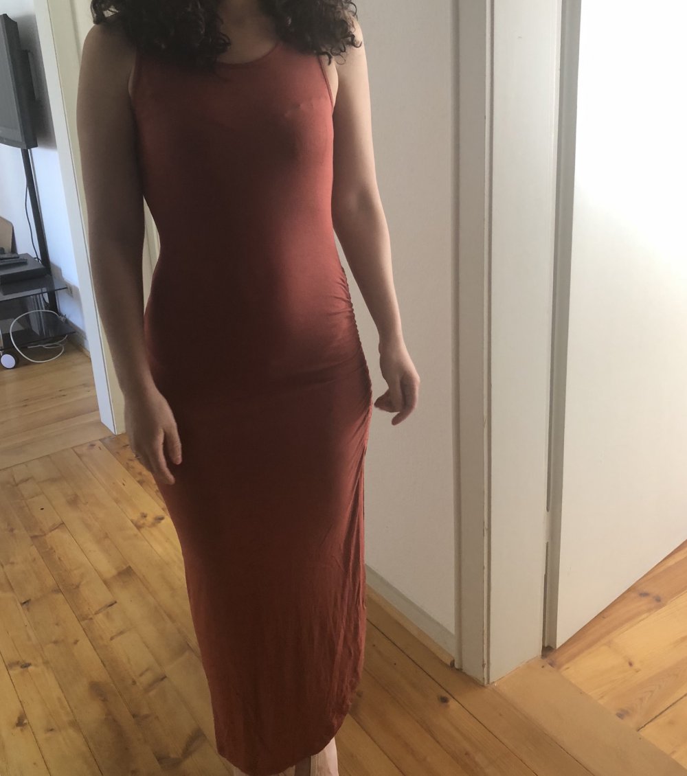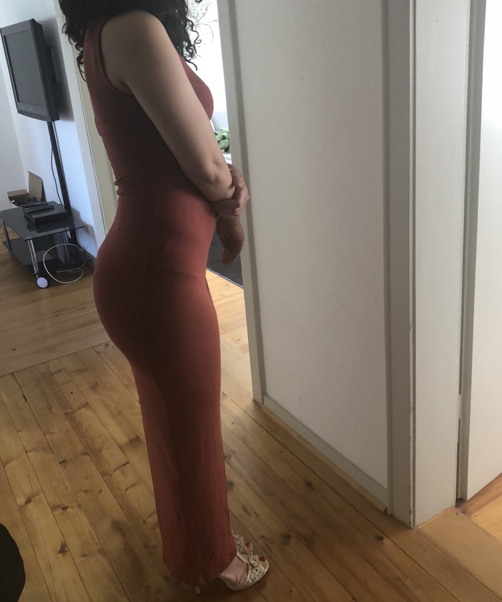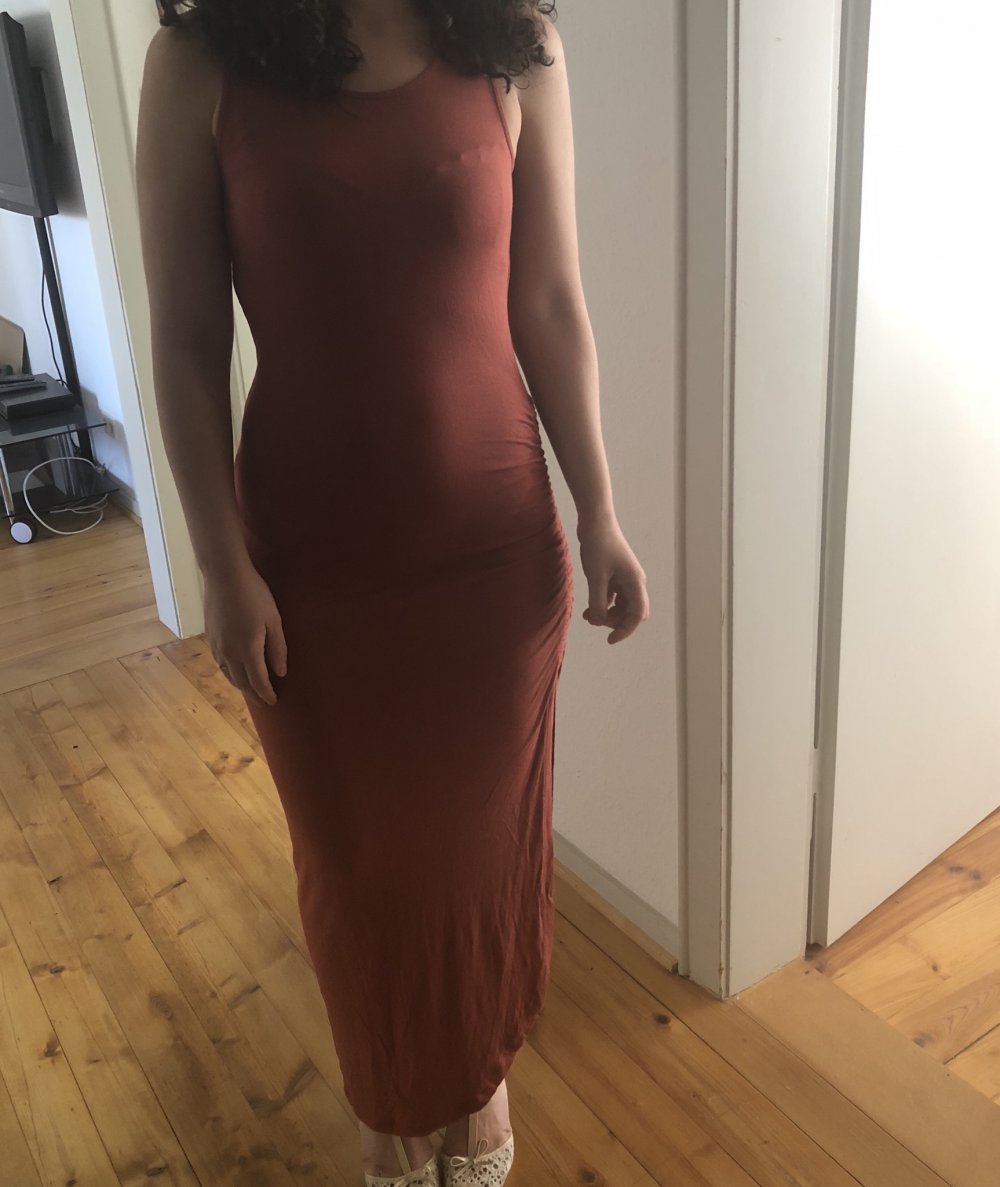 Sommer Maxi Kleid auf eine Seite offen. Sieht schoen aus fuer grosse Frauen. Angenaemer Stoff.