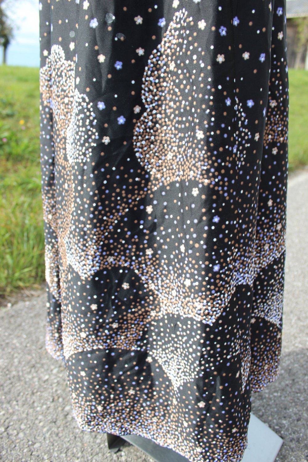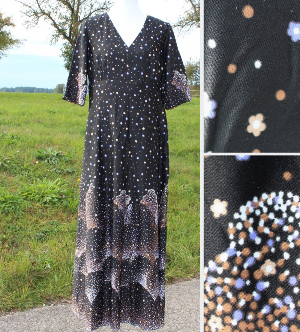 schwarzes langes True Vintage Kleid mit Blumen und Punktemuster, ca. Größe 42-44, Unikat, Maxikleid