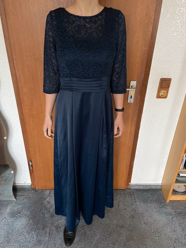 Schönes elegantes dunkelblaues Kleid mit Spitzenoberteil zu verkaufen