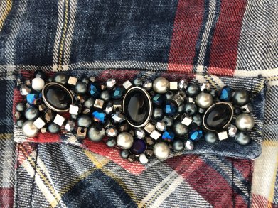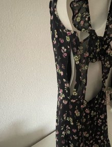 Bunte Blumen auf schwarzem Grund ,durchgehende Knopfleiste