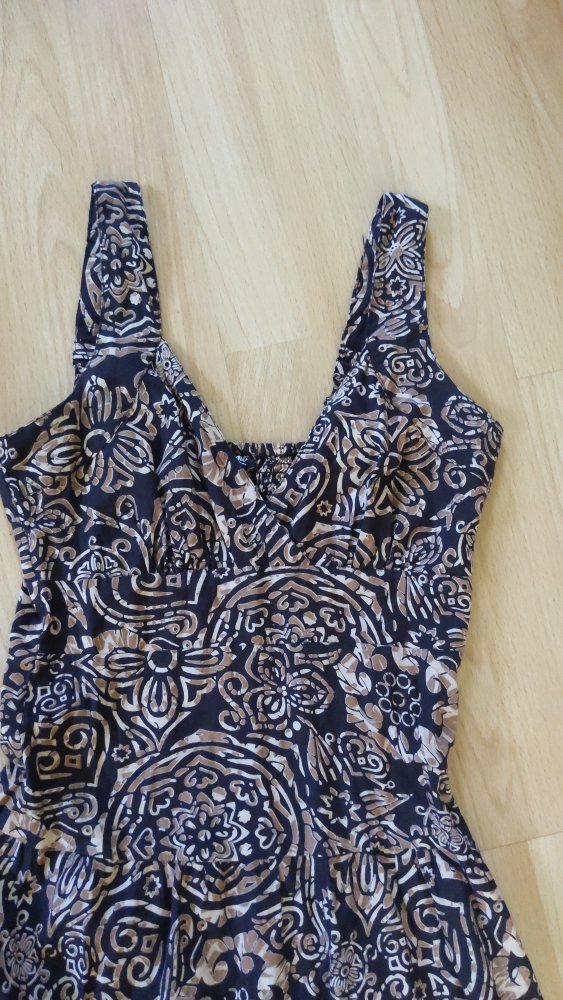 Das braun gemusterte Sommerkleid ist sehr figurbetont geschnitten und zaubert ein schönes Dekolleté. Das Kleid ist neuwertig, da ich es noch nie getragen habe.